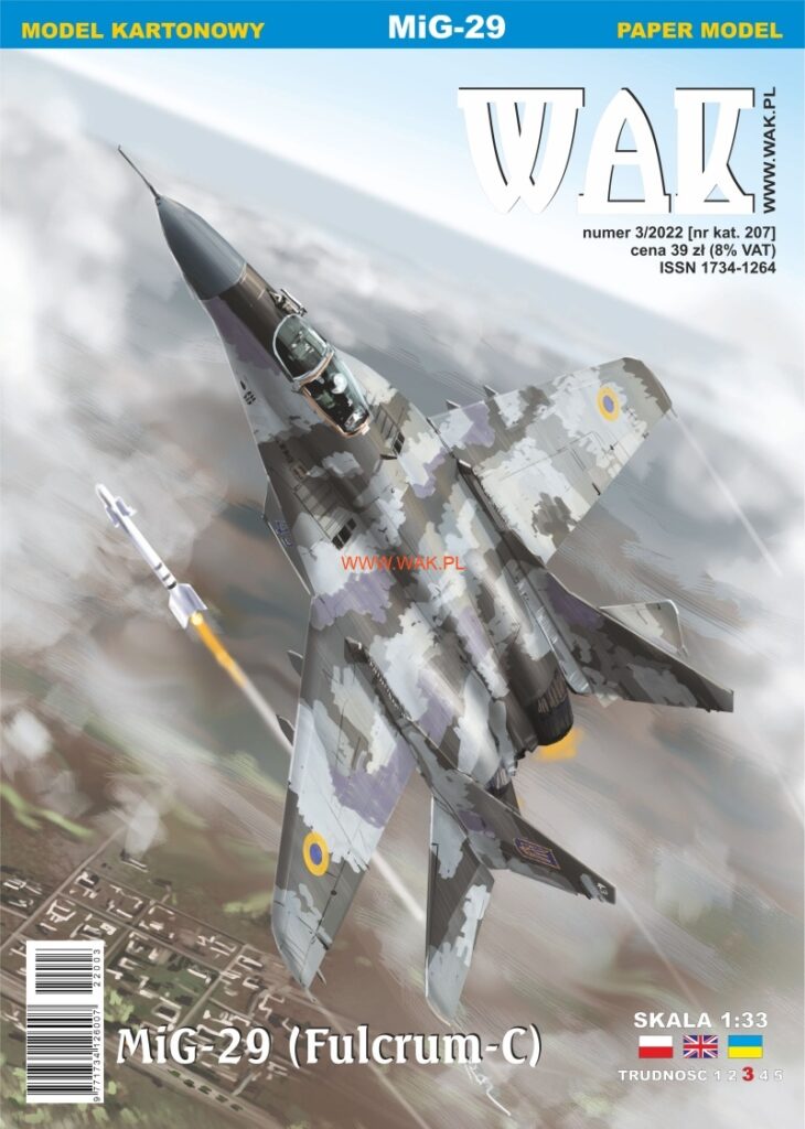 Kolejną nowością jest WAKowski wariant Mig-29 projektu J. Janukowicza. Jest to moodel ukraińskiego samolotu myśliwskiego w malowaniu 204. Brygady Lotnictwa Taktycznego (2022). Samolot w kamuflażu “pikselowym”. Model średnio skomplikowany.